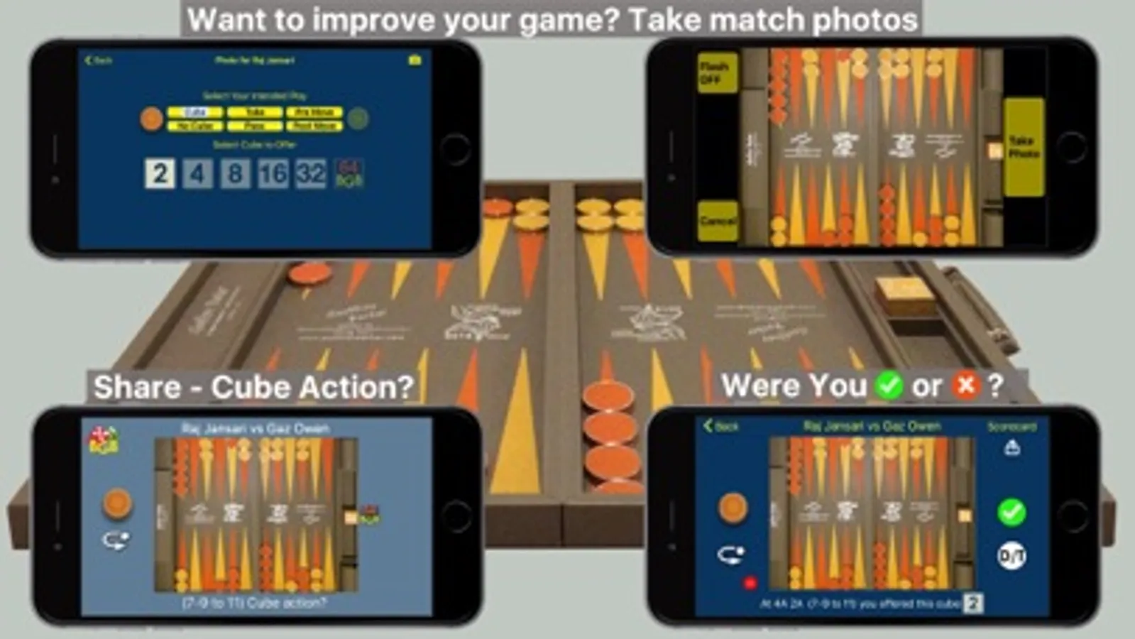•Take position photos to improve your game and keep them organised for each match. Match scores, cube value and cube decision appear under each photo.