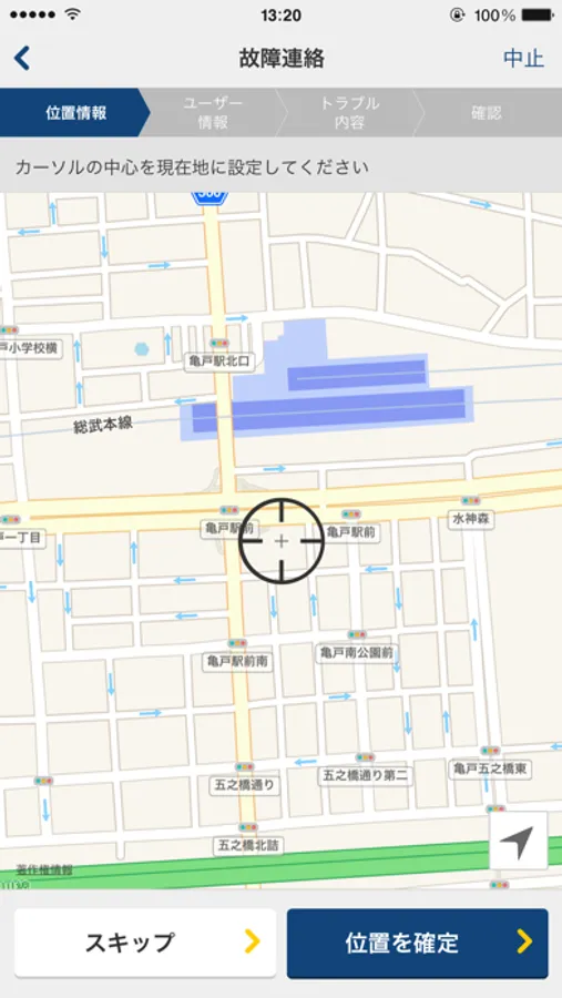 GPS機能を使用して、トラブル場所を簡単に設定できます。
