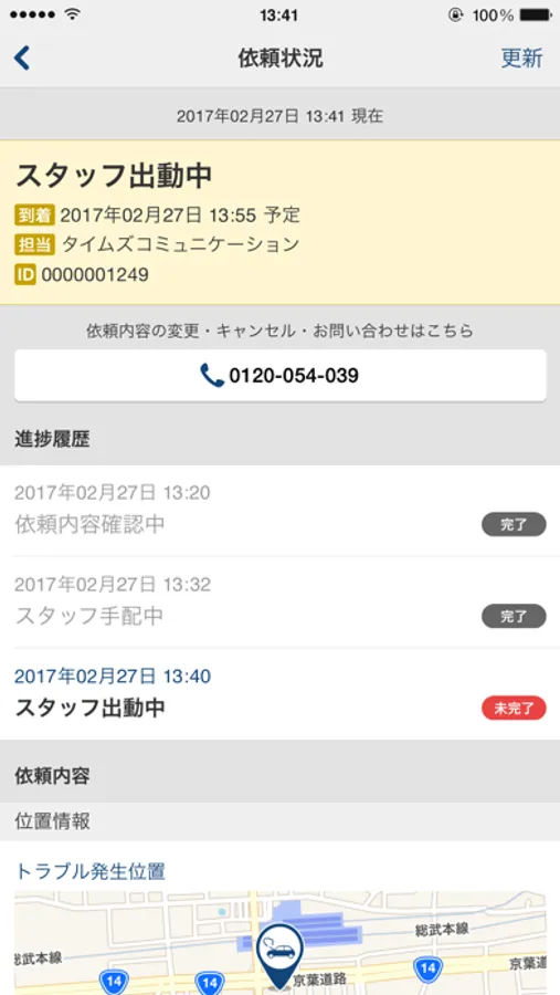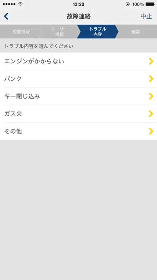 トラブル内容を選択するだけで、アプリから直接ロードサービスを依頼できます(※)。