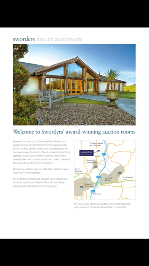 Sworders Fine Art Auctioneers are based in award winning eco-friendly offices and auction rooms at Stansted Mountfitchet, Essex. Established over two hundred years ago in 1782 above a coffee shop in Bishop’s Stortford we are now one of the leading auctioneers outside London.