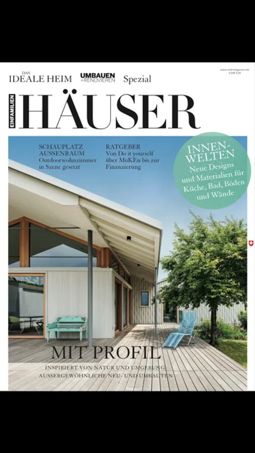 Das Ideale Heim ist das Schweizer Magazin für Architektur, Design und Wohnkultur. Lassen Sie sich inspirieren von traumhaften Häusern mit exklusiven Einrichtungen und gehen Sie mit «Das Ideale Heim» auf Entdeckungsreise: Spannende Tipps rund ums Wohnen, zauberhafte Gärten, spektakuläre Architektur und die neuesten Trends aus der Designwelt.