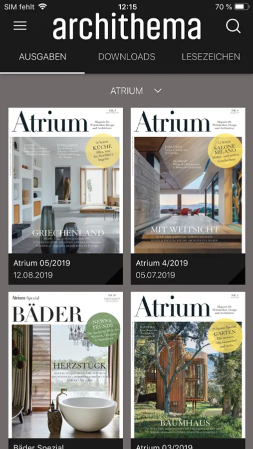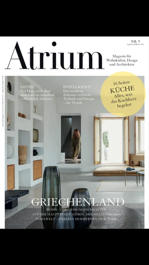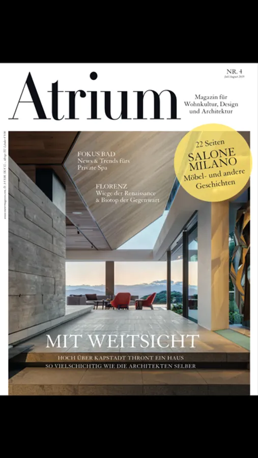 Atrium ist das Magazin für Architektur, Design und Wohnkultur. Lassen Sie sich inspirieren von traumhaften Häusern mit exklusiven Einrichtungen und gehen Sie mit «Atrium» auf Entdeckungsreise: Spannende Tipps rund ums Wohnen, zauberhafte Gärten, spektakuläre Architektur und die neuesten Trends aus der Designwelt.