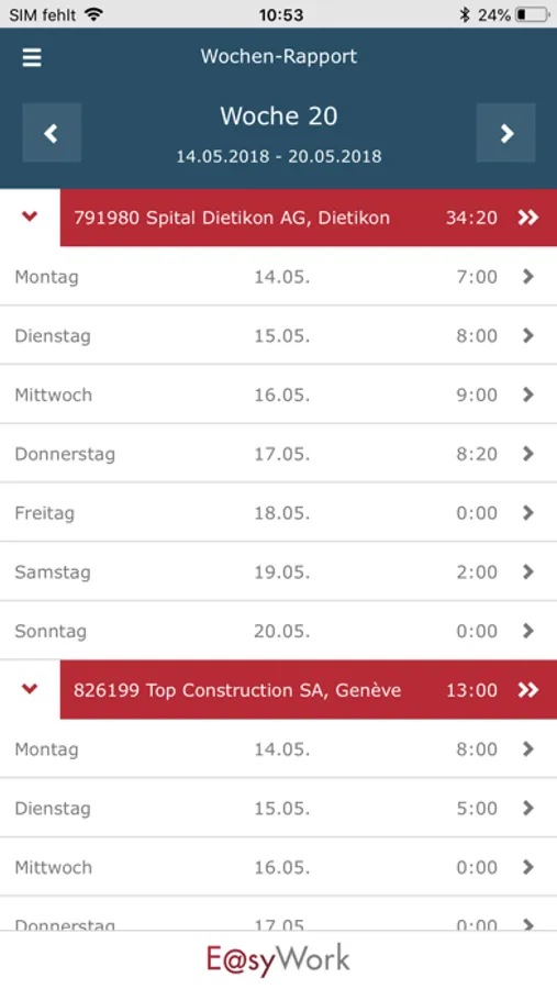 E@syWork Zeiterfassung ermöglicht temporären Angestellten von Schweizer Personalverleihern das Erfassen gearbeiteter Stunden.