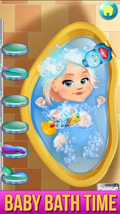 Level 3: Baby Bath time! Wash, clean-up, rinse, brush teeth and play with the rubber ducky in the bathtub!
