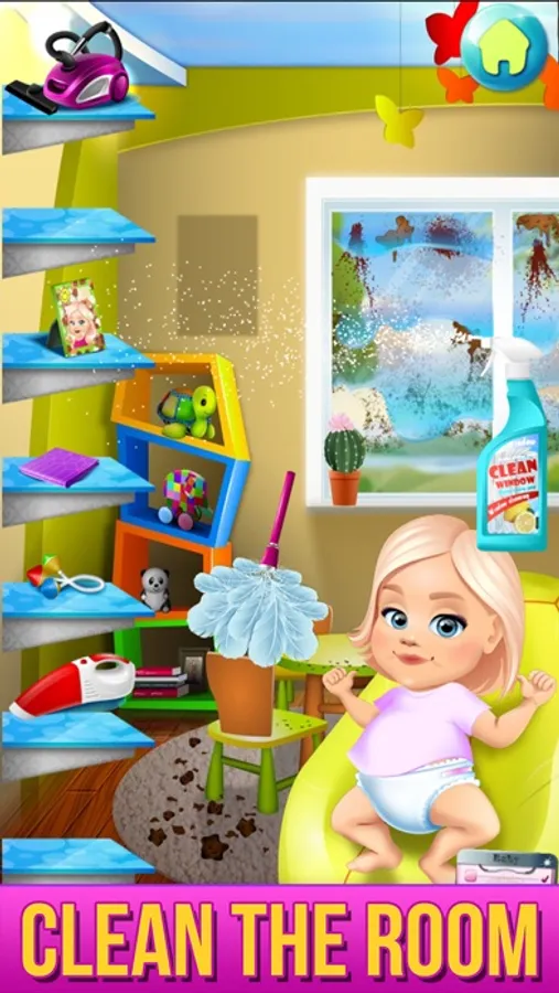 Level 7: Help clean-up the living room! Decorate, wash the window, vacuum the rug, use the duster and more!