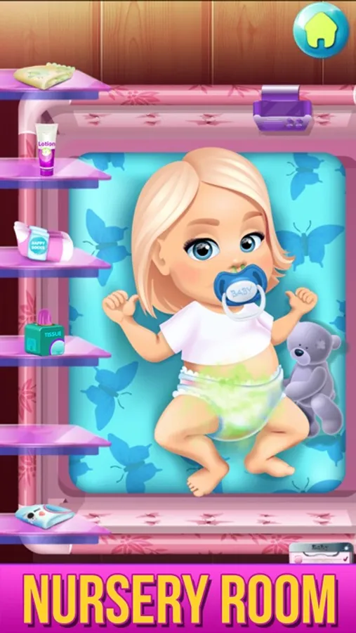 Level 2: Baby nursery room - Change the baby's diaper, give a binky, play with a toy teddy bear and more!