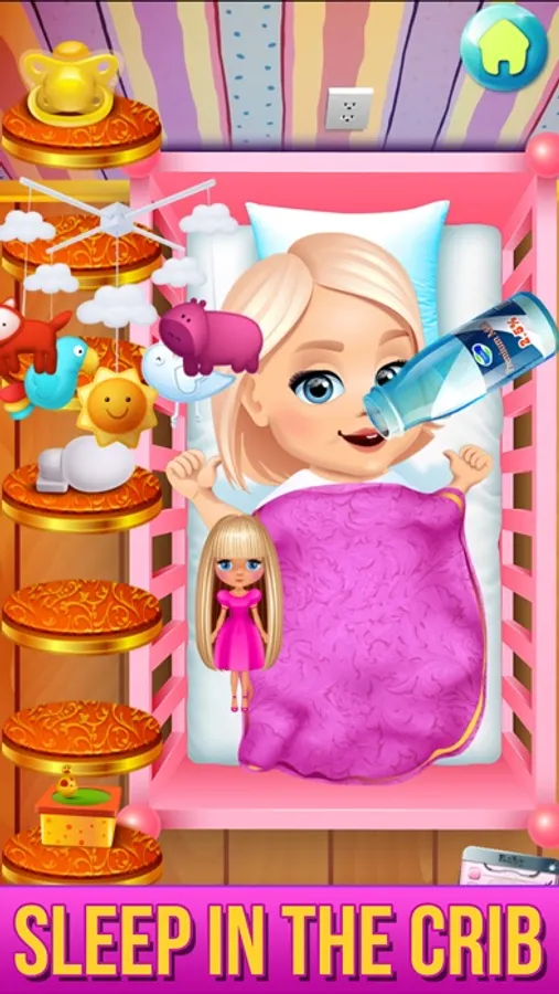 Level 6: Prepare the baby for bed time & a nap. Place the night-light, baby blanket, mobile and toy doll!