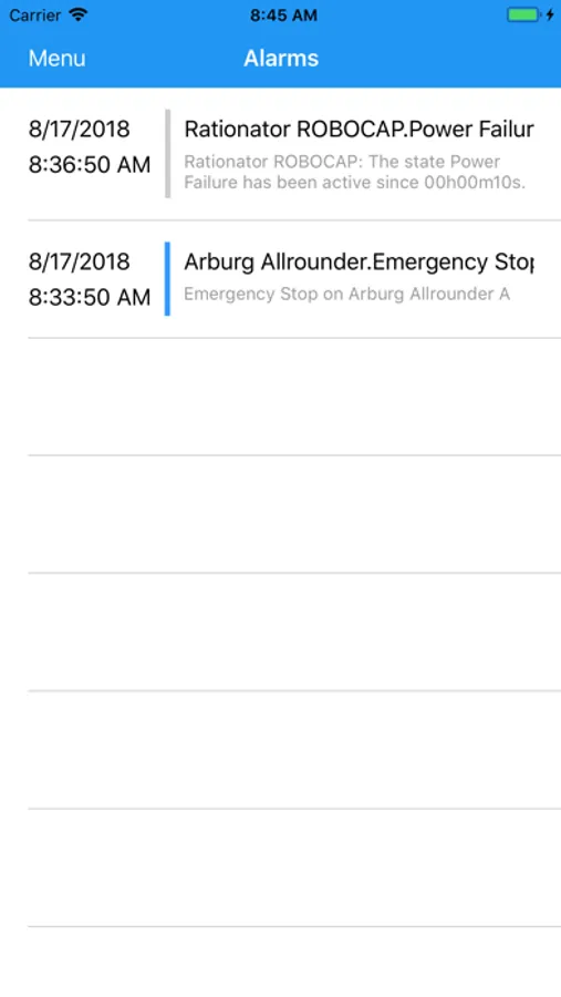 In the event of down times, the user will be informed via push notification by the app. Source, time as well as the reason for downtime will be transmitted with optional free text information. Thus, machine operator or production manager will be informed and will be able to intervene at an early stage, even if they are not in the vicinity of the machine.