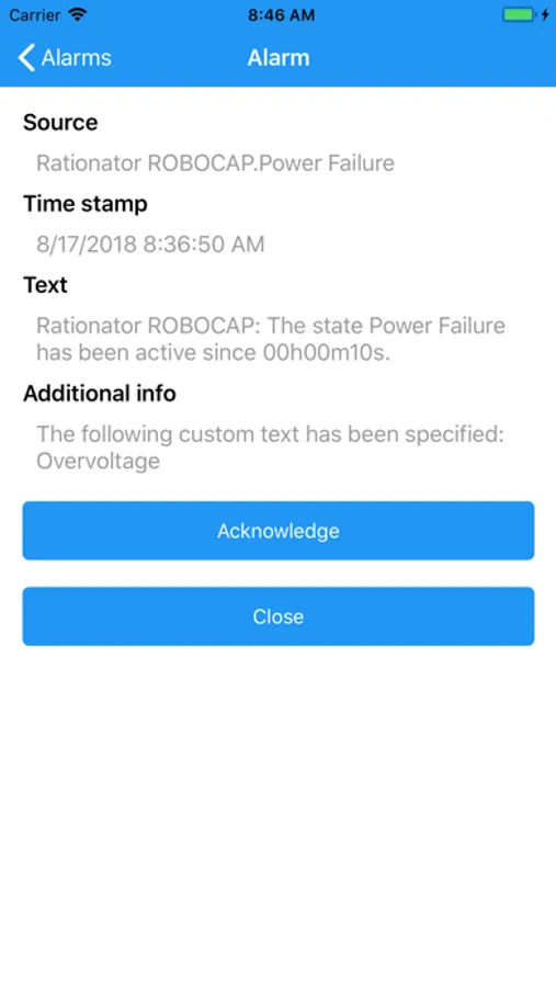 Acknowledgement and logging of alarm messages:
