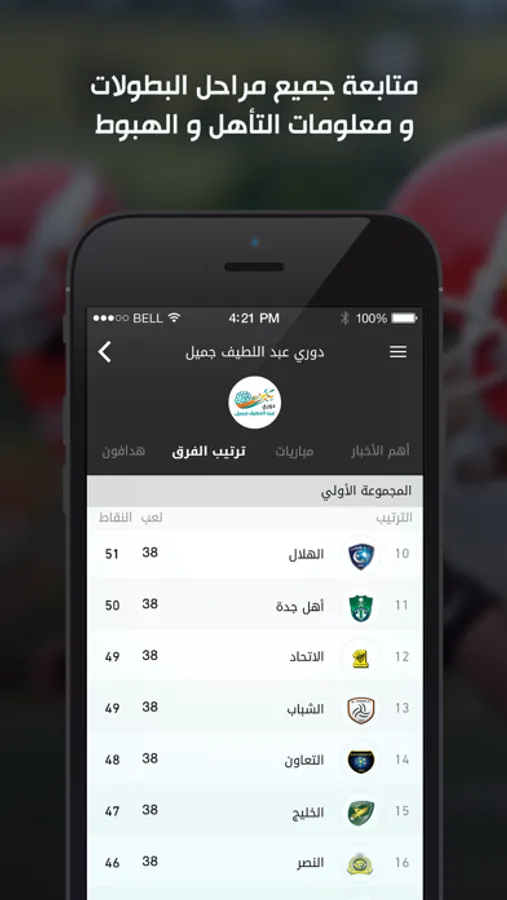 متابعة جميع مراحل البطولات بسهولة تامة. يمكنك عرض ترتيب فرق الدوريات، و مراحل المجموعات و التصفيات و معلومات التأهل و الهبوط، جدول مباريات الدوريات و البطولات