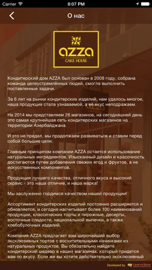 The largest confectionary shops network in Azerbaijan is ready to submit you the AZZA internet application which will make us even closer.