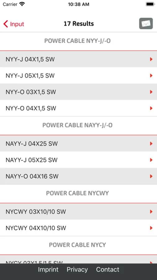 the diameter required for copper and aluminium cables is calculated for the most commonly used cable designs and in consideration of the installation types – in ground (direct, conduit/duct), in buildings (in/on walls, in air, cable conductors, cable trays) – and then directly output as a list with the Faber article numbers. The calculated results are directly linked with the Faber product pages and can be sent to any desired e-mail address.