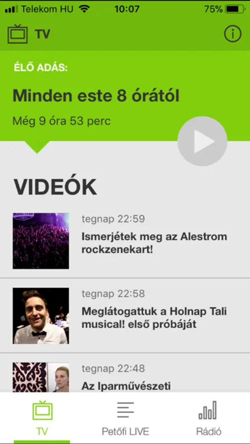 A Petőfi LIVE több egyszerű livestreamnél: az alkalmazásban élőben hallgathatod a Petőfi Rádiót és nézheted a Petőfi TV-t, de ha lemaradtál az adásokról, ugyanitt visszahallgathatod és visszanézheted a legizgalmasabb részleteket, mixeket, beszélgetéseket.