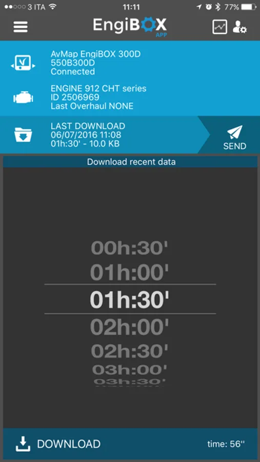 Download the data log of your Rotax aircraft engine from the AvMap EngiBOX engine monitoring system, with your smartphone / tablet via Bluetooth and store it on the EngiBOX Portal.
