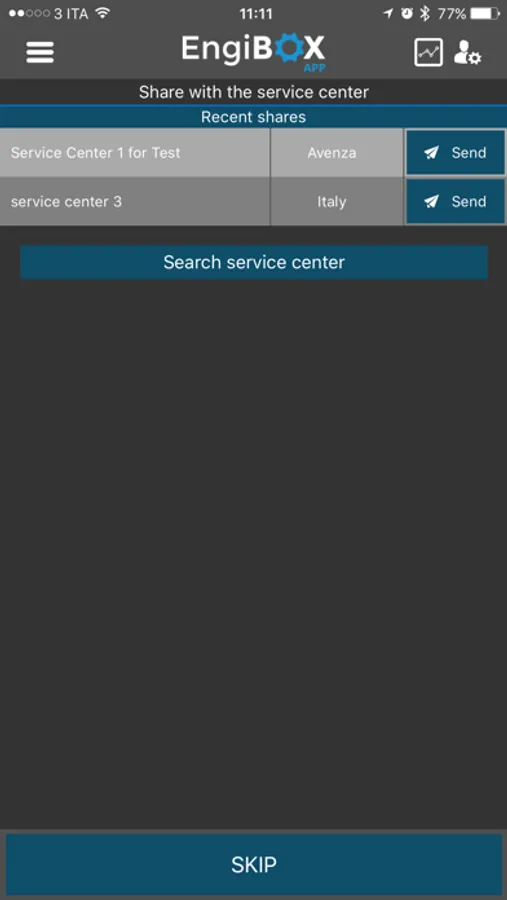7. When the download is complete, press the SEND icon. The service center will be able to see all your engine logs.