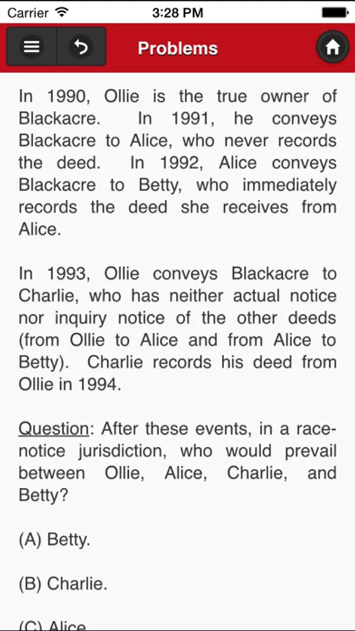 This app covers the following substantive areas: Adverse Possession; Bailment; Co-Ownership; Covenants & Easements; Deed; Finders; Gift; Leases; Land-Sale Contract; Marriage; Mortgage; Recording Act; Title Transfer. For Estates & Future Interests, download the companion app titled: Future Interests Made Simple.