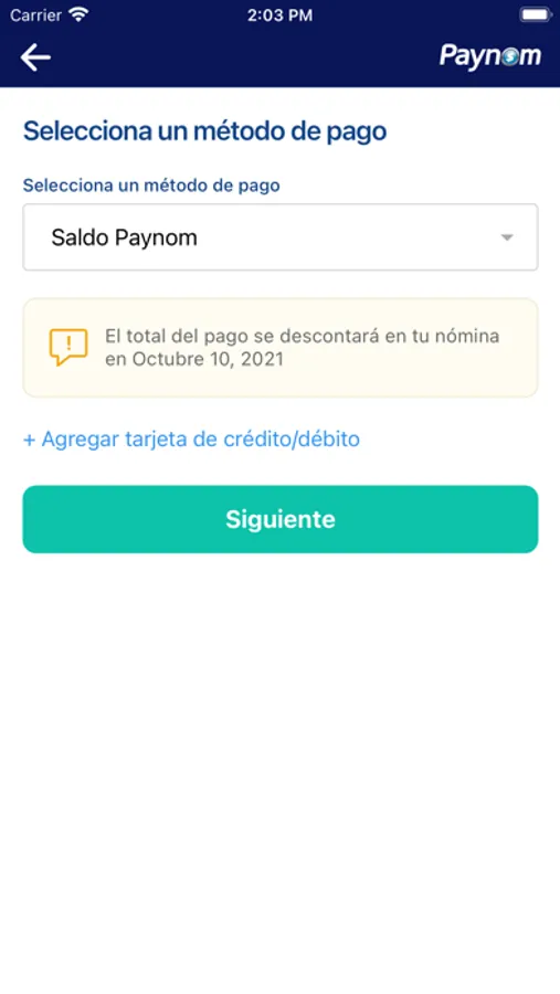 Paynom es una innovadora aplicación creada para facilitar tanto a las empresas como a los empleados el pago de servicios en modalidad de descuento por nómina o con cargo a tarjeta de crédito o débito.