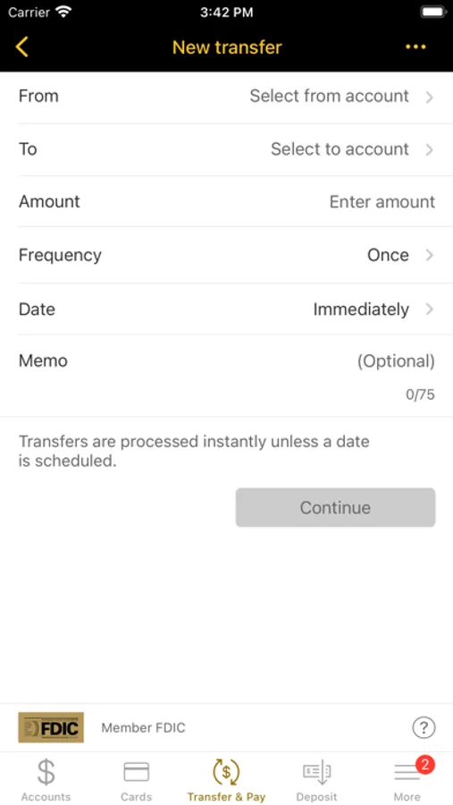 ● Deposit checks from your mobile device directly to your account with on-screen limits3.