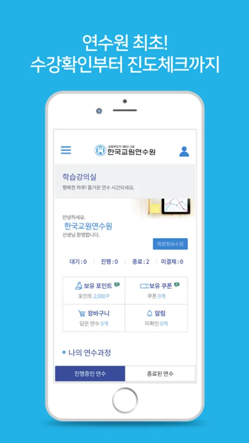 온라인수강과 진도체크, 연수과정안내가 한눈에~ 한국교원연수원 앱으로 편리하게 이용하세요~!