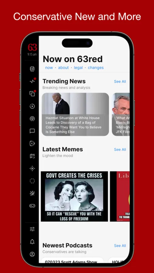 Quickly see the hottest news across all conservative and Republican sites , as soon as it happens. This free app brings together the news from the best sites, letting you find out what people are talking about right now ... and it's free!to be easy to use, 63red brings together all your favorite conservative news sources in one spot.