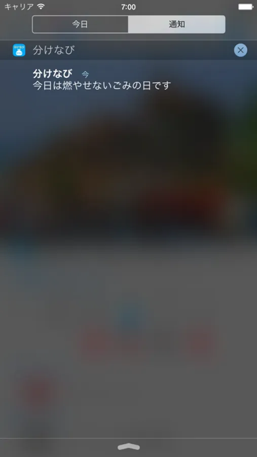収集予定のごみ種別を前日と当日にアラートでお知らせします。時間は自由に設定することができます。