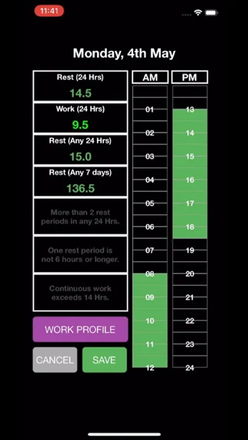 - Complete Hours of Rest quickly and easily with the Hours of Rest feature. If MLC limits are exceeded, an email notification is sent to the respective managers to inform them of the noncompliance.