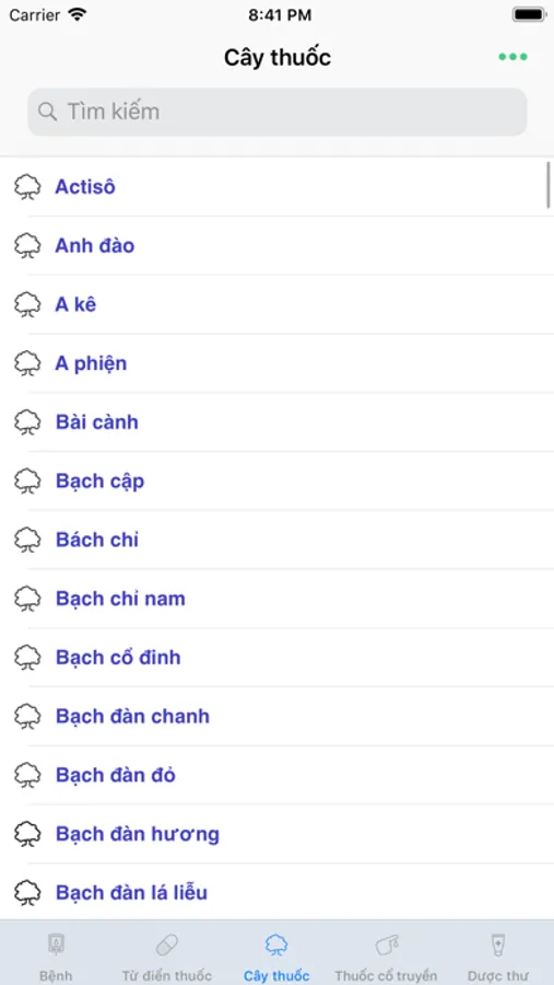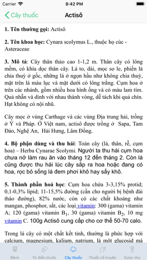 ● Cây thuốc: Tổng hợp hàng ngàn loại cây thuốc khác nhau. Trong mỗi loại cây sẽ có thông tin chi tiết, thành phần hóa học, công dụng của cây, ....