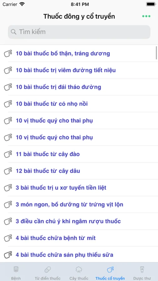 ● Thuốc đông y (thuốc cổ truyền): Tổng hợp hàng ngàn bài thuốc đông y với nhiều loại bệnh khác nhau