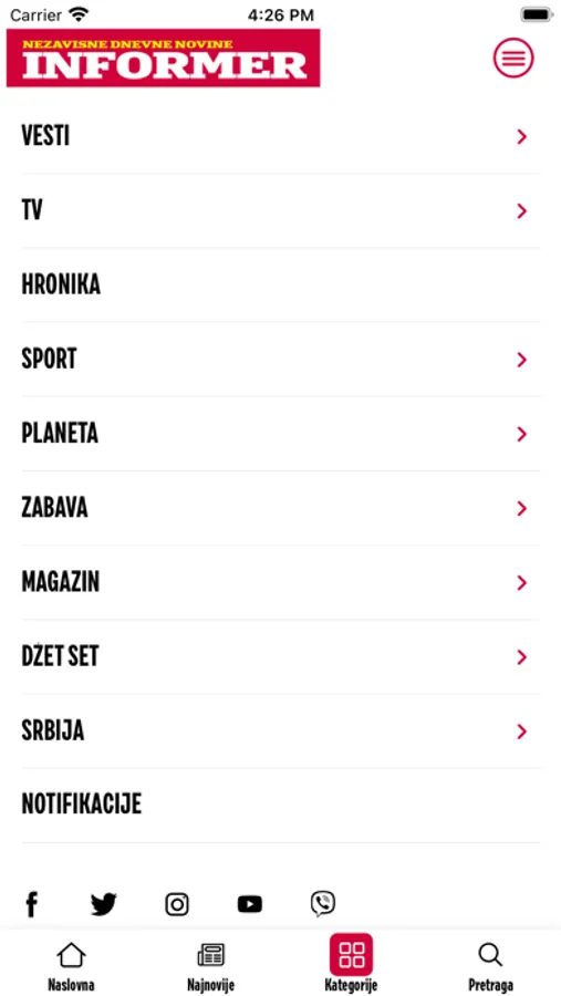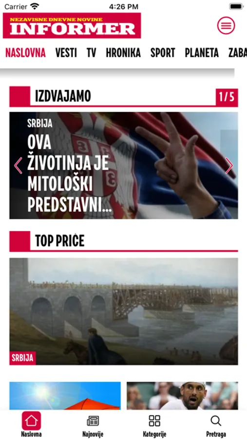 Aplikacija informativnog portala www.informer.rs.