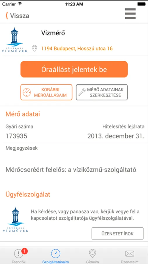 Az applikáció segítségével - diktálási időszakban - a nap 24 órájában bármikor elküldheti a mérőóra állását fotó csatolásával, s így a befizetendő számla az Ön által diktált mennyiség alapján fog elkészülni.