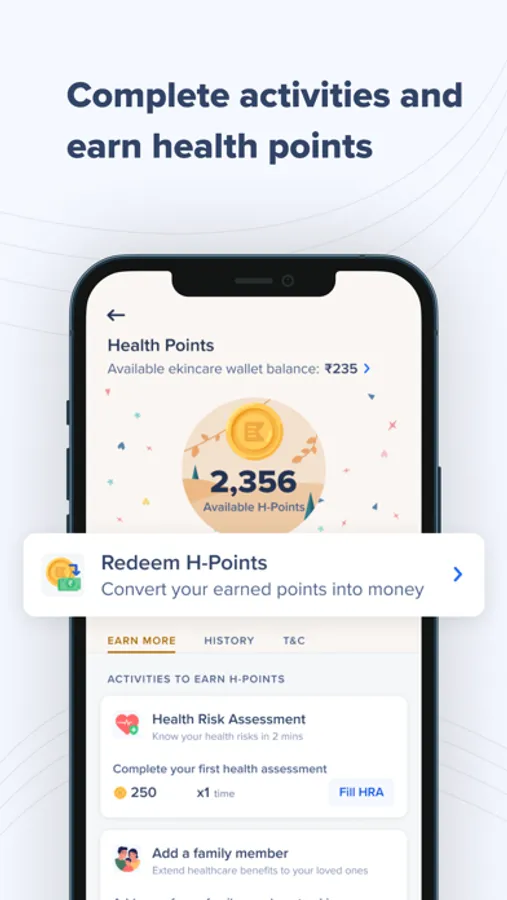 Extend the same benefits to your family as well. You can track the health of up to 5 dependents on ekincare and they can transact on the platform too!