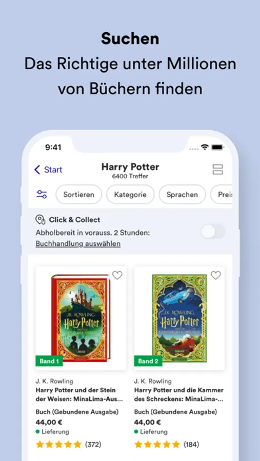 Über 6 Millionen Bücher, Hörbücher, Spielwaren, Gesellschaftsspiele und Lese-Accessoires versandkostenfrei* in Ihre Buchhandlung oder nach Hause bestellen – solange ein (Hör-)Buch in der Bestellung enthalten ist.