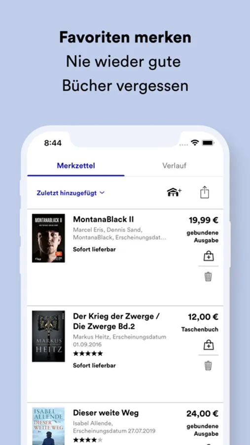 Nie wieder ein gutes Buch vergessen! Pflegen Sie Ihre persönliche Lese-Wunschliste und speichern Sie interessante Artikel auf Ihrem Merkzettel jederzeit griffbereit.