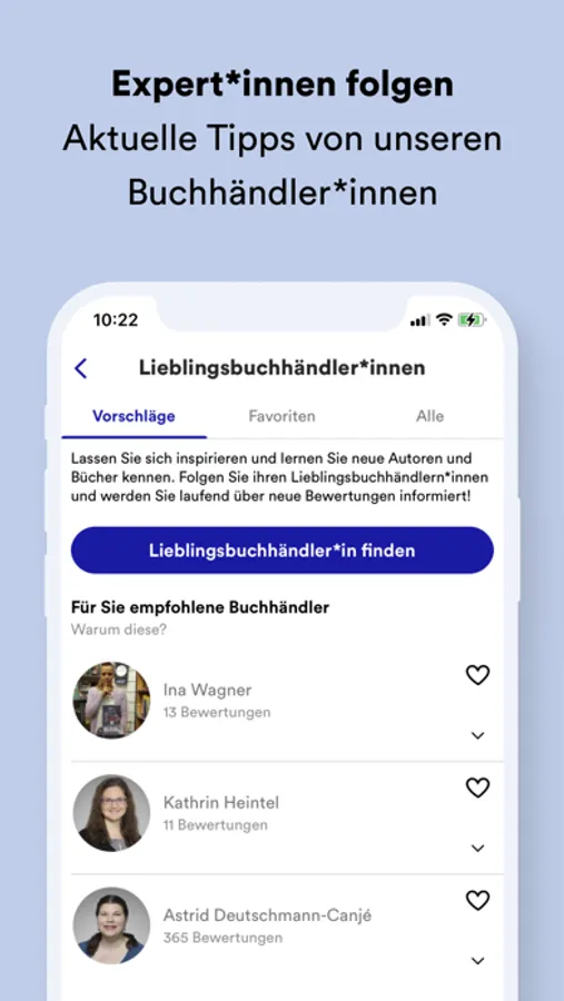 Folgen Sie unseren Buchhändler*innen und erhalten Sie exklusive Buch-Tipps per Push-Nachricht.