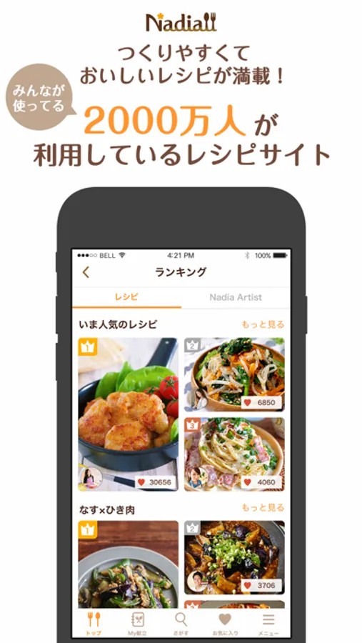 月間2000万人が利用するレシピサイトNadiaの公式アプリです。