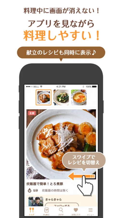 Nadiaの美味しいレシピを組み合わせて、自分だけの献立を作りましょう。レコメンド機能で新しい発見も! 毎日の料理に役立つ機能も満載です。