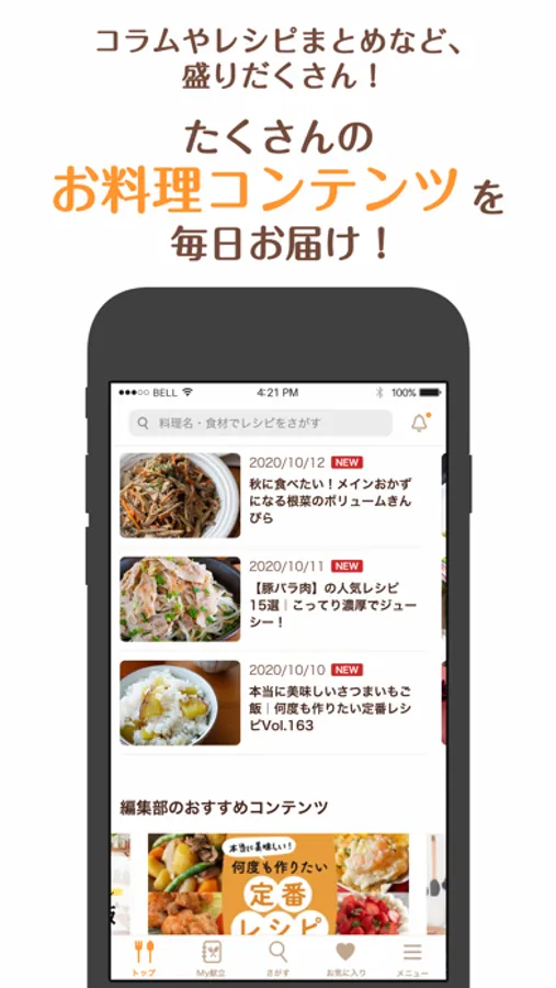 さらに、コラムやレシピまとめなど、たくさんのお料理コンテンツを毎日お届けしています。