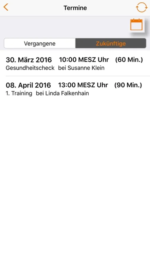 Alle bisher durchgeführten Trainertermine, sowie alle schon geplanten zukünftigen Trainertermine werden angezeigt. Zur optimalen Erreichung der Trainingsziele, kann das Mitglied täglich seine Feelness, also seine subjektive Wertung hinsichtlich Stresslevel, Einhaltung der Ernährungsempfehlung und sein Aktivitätslevel außerhalb der Fitnessanlage dokumentieren.