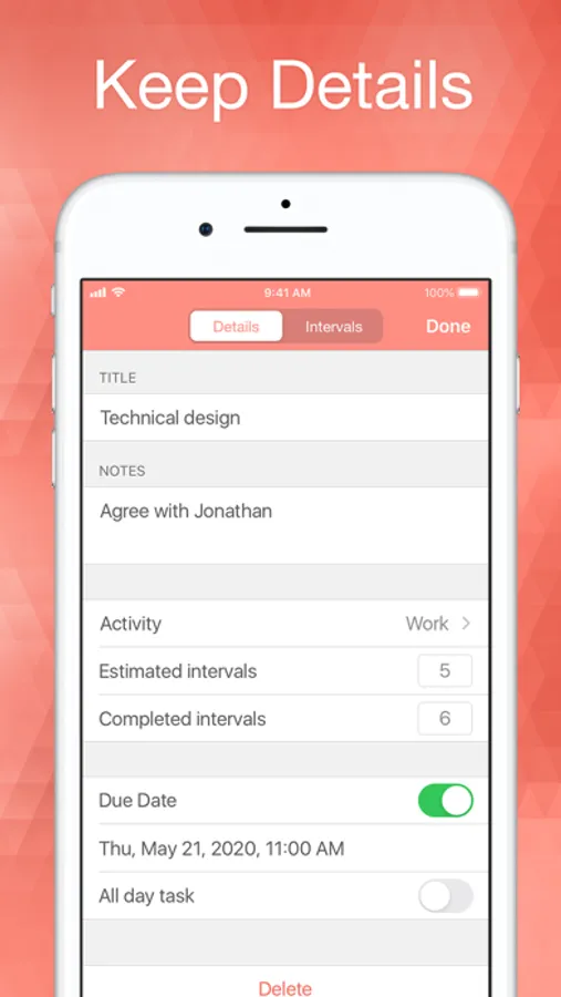 - View and manage completed intervals