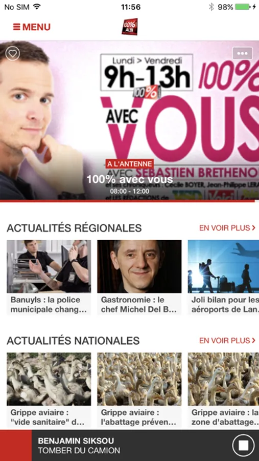 Emportez votre radio régionale partout grâce à la nouvelle application mobile. Ouvrez 100%Radio - Les tubes et l'info et retrouvez tout le contenu de votre radio régionale préférée. Vous pouvez écouter la radio de votre ville dans plus de 12 départements du grand Sud : Toulouse, Albi, Montauban, Auch, Tarbes, Pau, St Gaudens, Foix, Carcassonne, Castres, Perpignan, Cahors... Ecoutez aussi nos 5 websradios thématiques Hits, 80's, 90', Love et Souvenirs. Vous pouvez aussi écouter toute l'info de la rédaction de 100% en temps réél ou en podcast, nous envoyer vos infos routes, connaitre les titres en diffusion, réécouter l'agenda et toutes les chroniques. 100% Radio les tubes et l'info , l'appli dont vous ne pourrez plus vous passer.