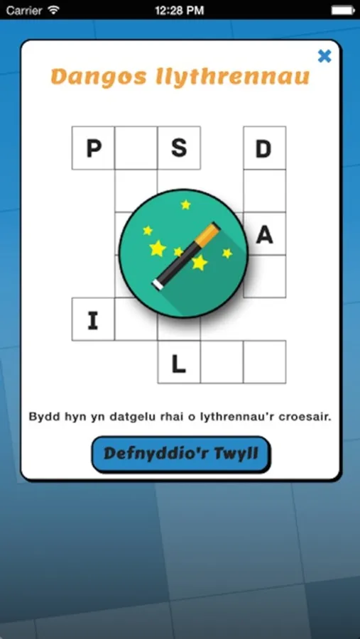 A Welsh language crossword app which is split into three levels of difficulty. There are cheats to help you along the way and an option to play against the clock!