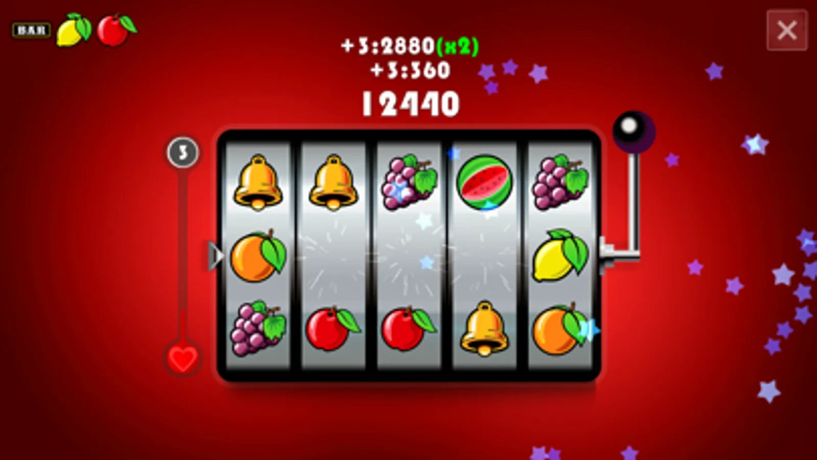 You must make clever groups of 3 or more cascade lines with the same fruits in any direction! Move the fruits up or down or press the lever and spin them all.