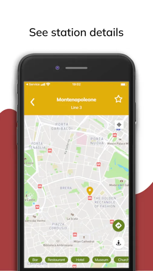 - NEARBY PLACES: Find easily hotels, restaurants, museums and much more in the vicinity of a specific metro station. For example, do you want a hotel near the Duomo di Milano? No problem: you can get informations and directions.