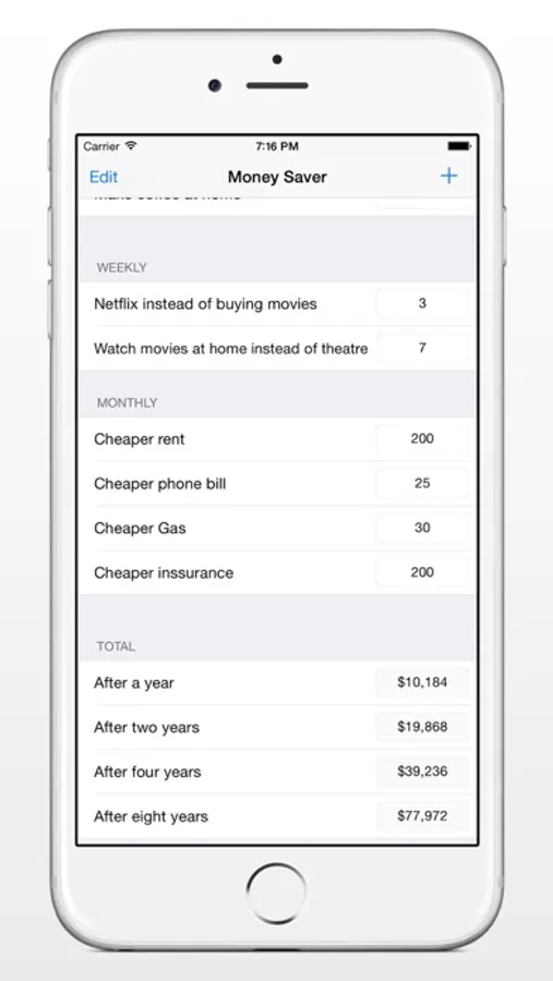 Calculate savings with ease! Money Saver will help you calculate savings for years in advance. It will also save all your savings and let you add more in the future.
