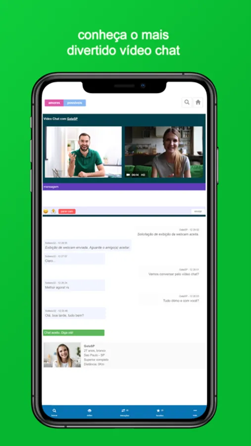 Envie mensagens, beijos, paquere pelo chat (com ou sem vídeo) e muito mais.