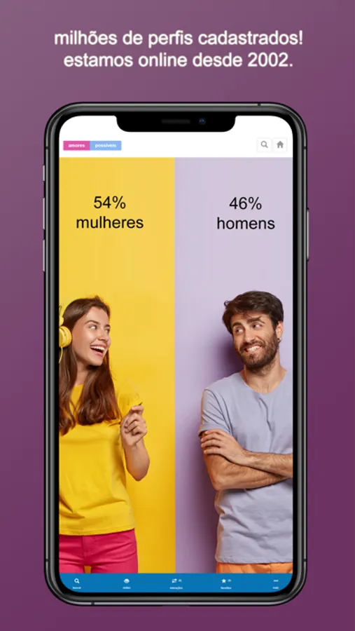 App de relacionamento, namoro, bate-papo, com milhões de perfis cadastrados.