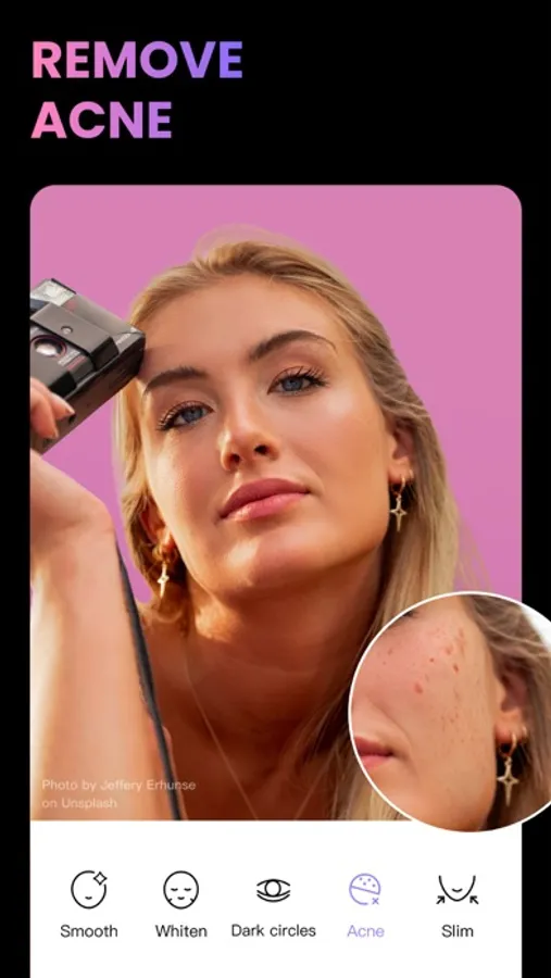 ·Adjust facial shape, nose shape, eyes, mouth, and other areas to achieve desired effects. Easy operation with natural-looking detail enhancement.