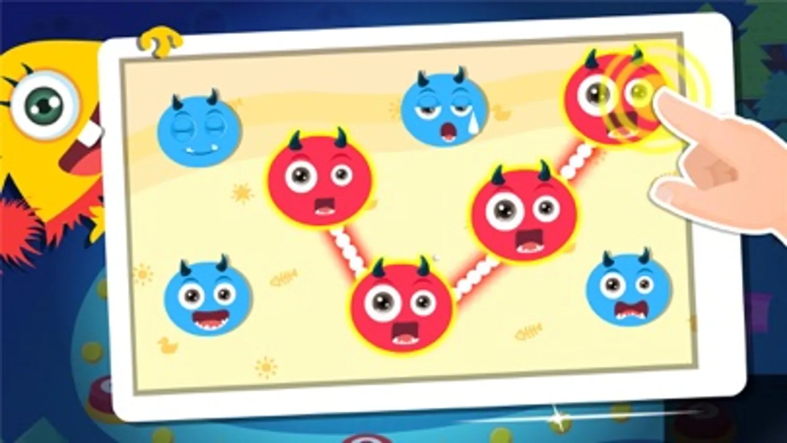 Red, yellow or blue? Big or small? There are many types of monsters in this wonderful world. Learn to differentiate colors, sizes and shapes with us!