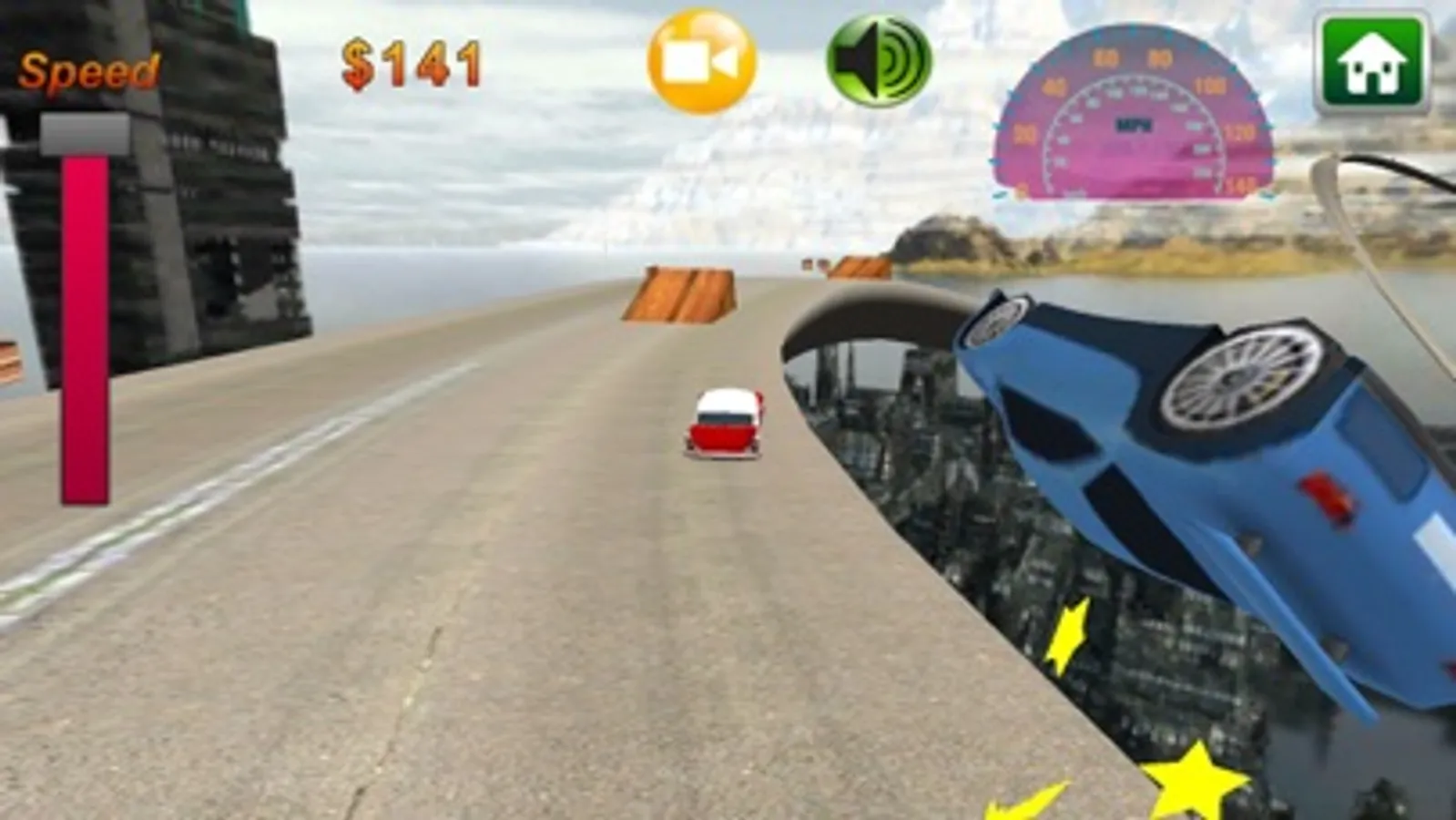 1. Click "START" to enter the game, the main menu displays three track scene (city track, sky walk and water land), select one scene then choose a car to start the game.