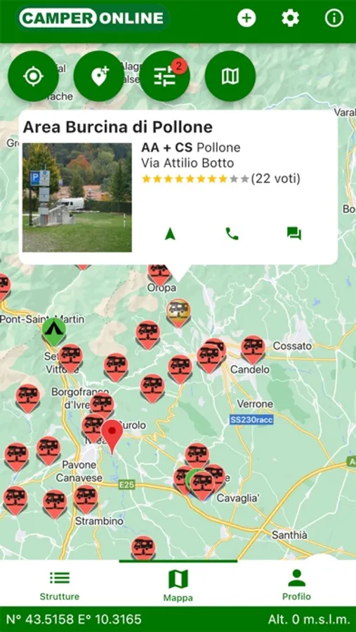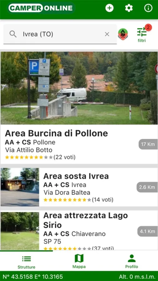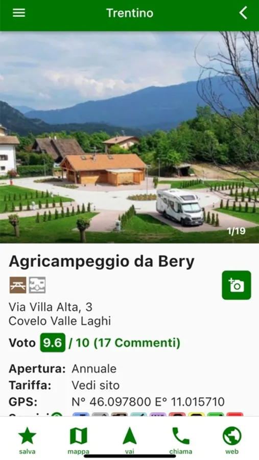 CamperOnLine is a reference site for motorhomes and caravan enthusiasts. This app allows listing the nearest RV parks, campsites, sales and service points as well as displaying them on the map. Each facility is described with general data, services, pictures and opinions by previous users (if available). It allows searches by entering city name, address, location. Preferred facilities can be bookmarked for quick later access. A data connection is required, otherwise on clicking “RV Parks” or “Campsites” a “An error occurred with the CamperOnLine service” message is displayed.